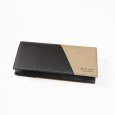 リサイクルレザーを使用した、バイカラーが印象的な2つ折り財布。