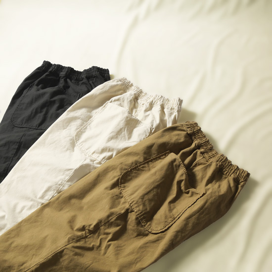 ウエスト周りはゴムと紐で、リラックスして穿けるイージーパンツです。