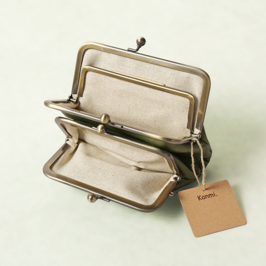 大きながま口と小さながま口をくっつけた独特のフォルムのお財布。
