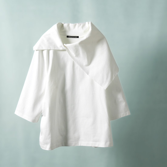 スカーフを巻いたようで、自然なドレープが表現されるデザイン。