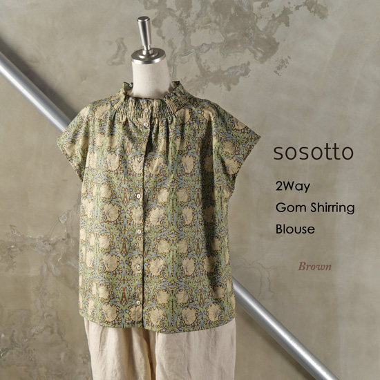 sosotto / ソソット Fablic By Best Of Moriss 2Way ゴムシャーリングブラウス