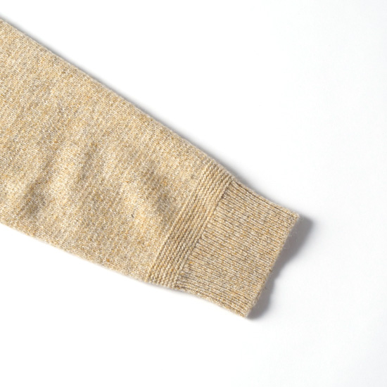 メランジとは、同系色などの濃淡のある糸を撚り合わせて出来上がる杢調の柄を意味します。