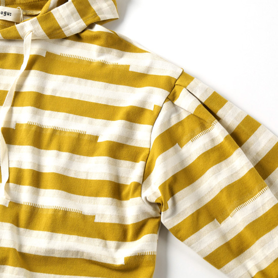 tumugu / ツムグ でこぼこインレーボーダー フードプルオーバー