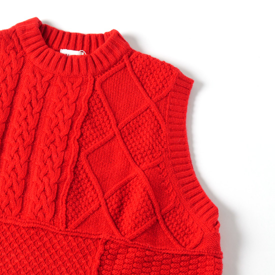 暖かみのあるザックリ編みのケーブルパターンベスト。