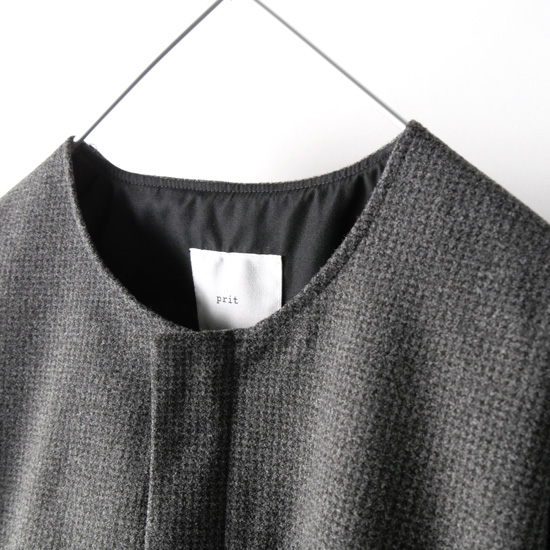 prit / プリット ウールライクハウンドトゥース ノーカラーラウンドヘムZIPブルゾン