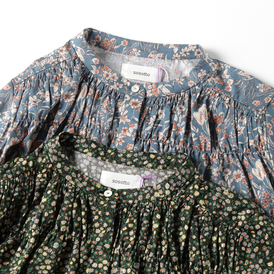 リバティーのタナローン生地で仕立てたフラワープリントのブラウス。