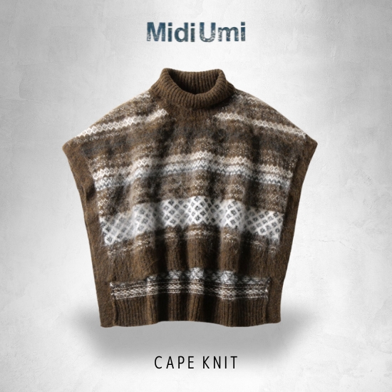 色々なカラーで織り込んだフェアアイル柄のニットケープ。