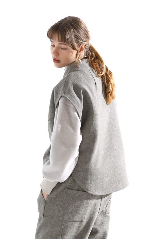 ワイドなシルエットのウールライクなプルオーバーベスト。