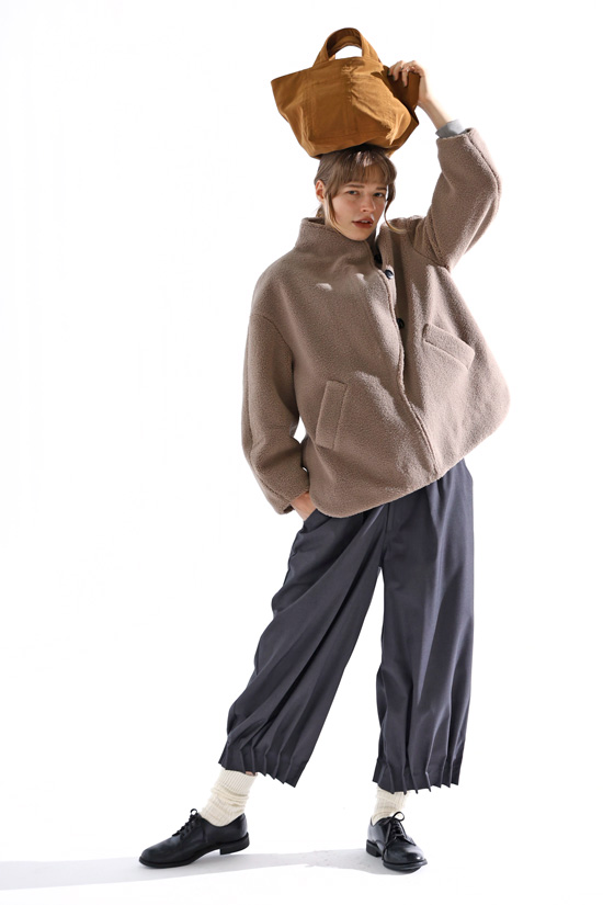 見た目にも暖かなボア素材のショートコート。