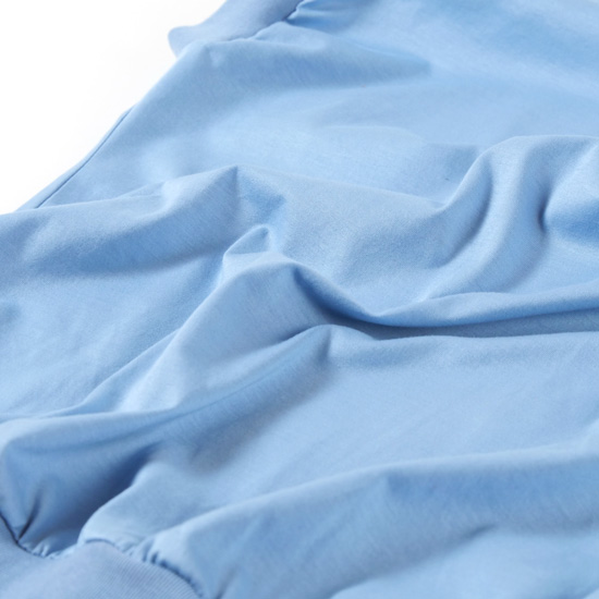 上品な光沢感を引き出したシルケット加工のコットン天竺生地で軽やかで通気性も抜群です。