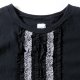 柔らかな天竺生地のTシャツに切りっぱなしのコットン生地をギャザー状に縫い合わせています。