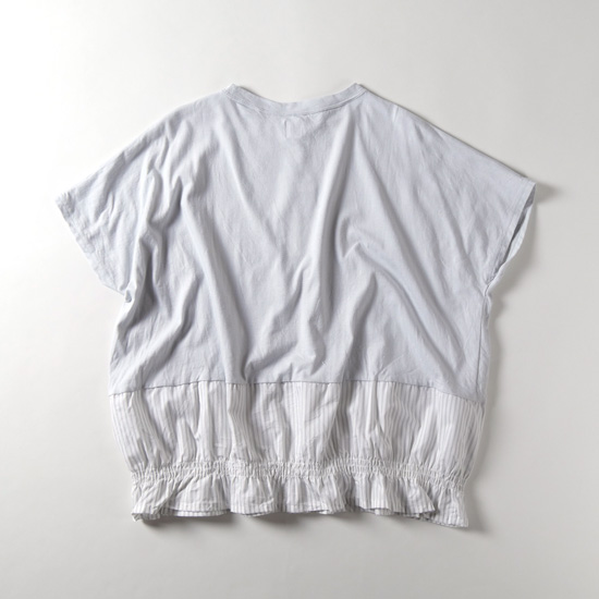 柔らかな天竺生地とコットンの布帛生地を裾周りでドッキングしました。