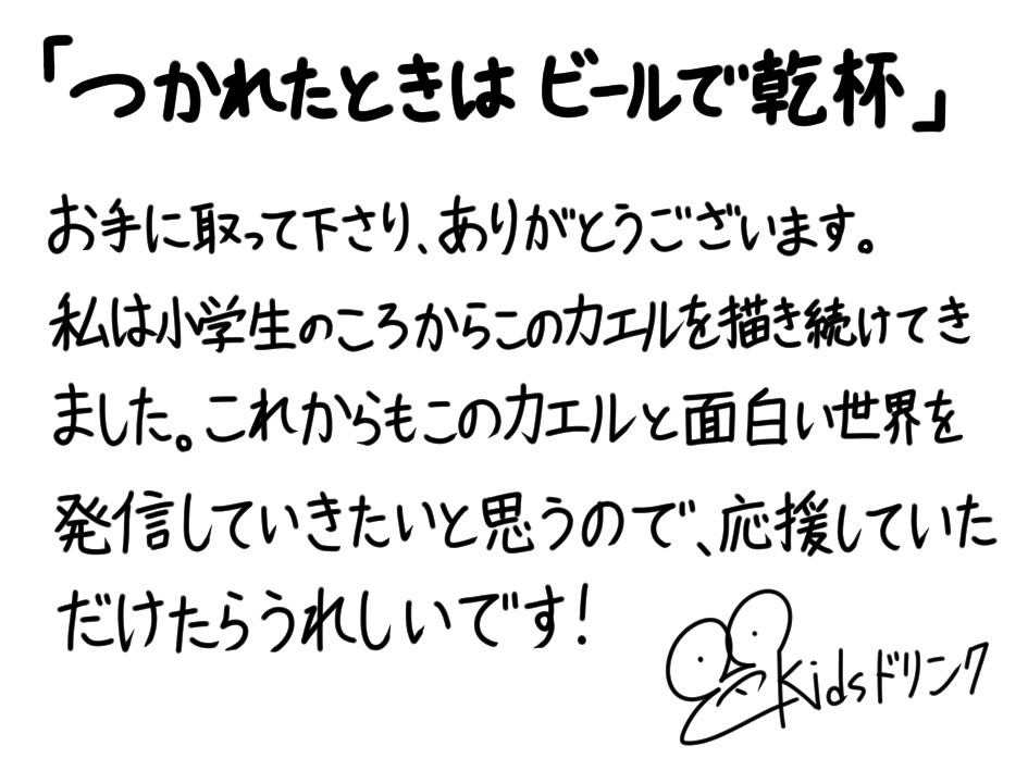 キラキラと光るホログラムにお疲れさまのカエルが乾杯。