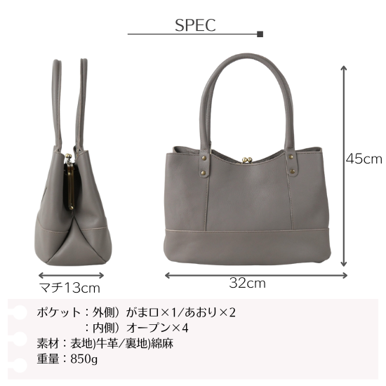 ◇ポケット:外側)がま口×1/あおり×2/内側)オープン×4