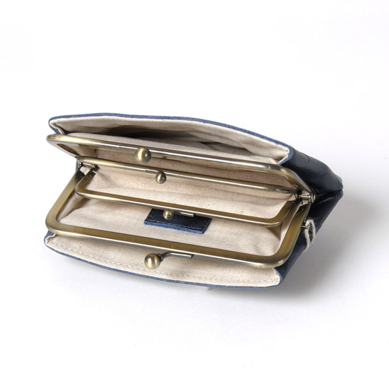 がま口に加え、あおりポケットを左右に設置した3層構造になっています。