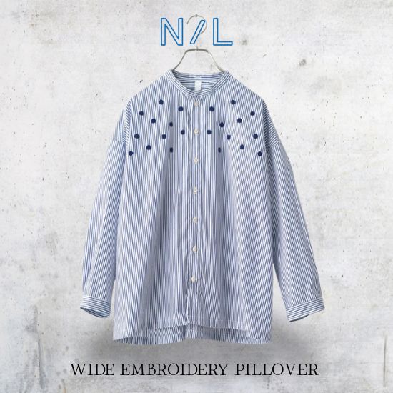 NATURAL LAUNDRY / ナテュラルランドリー 先染めブロード ワイド刺しゅうシャツ
