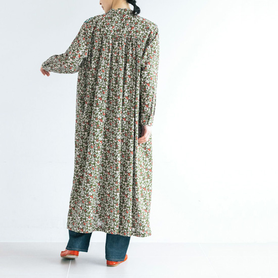 コットン100%のローン生地で柔らかく前開き仕様なので、羽織りとしても1年を通して着てきていただけます。