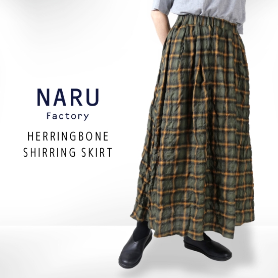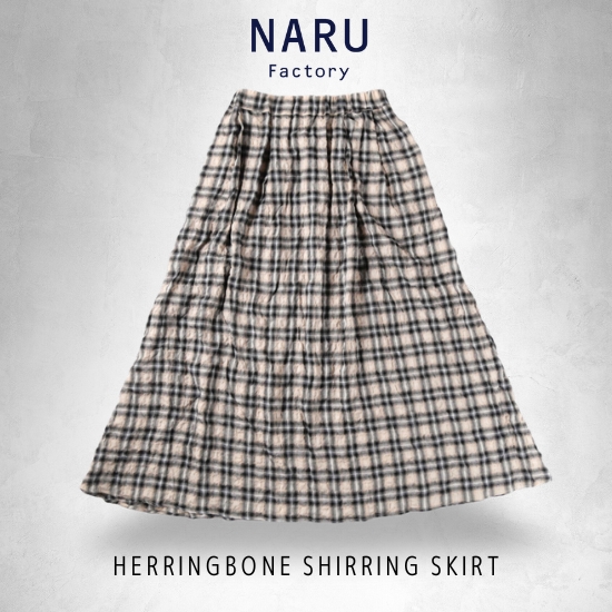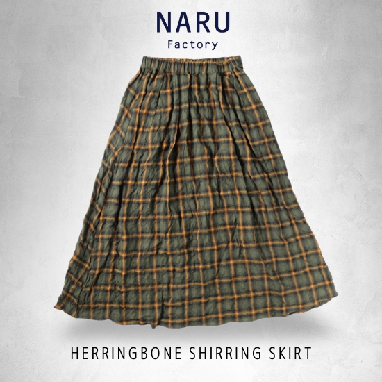 ふんわりと軽やかなシャーリングのフレアスカート。