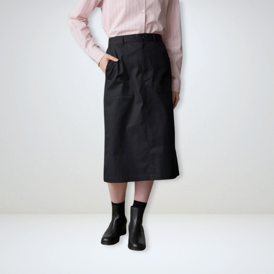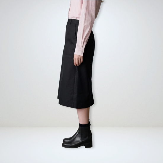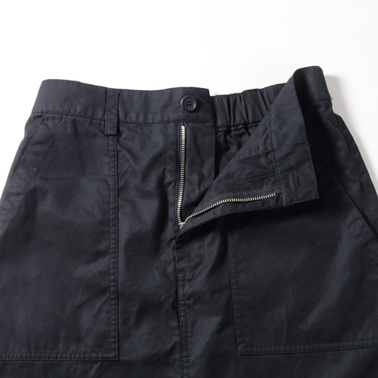 軽やかな薄手チノ素材のベイカーデザインのスカート。