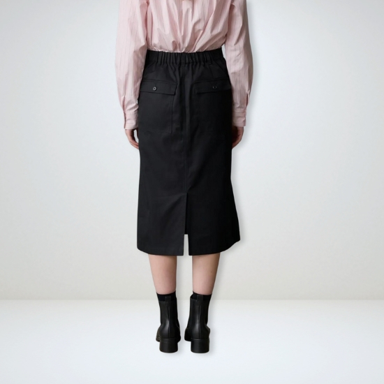 ウエスト後ろのゴム仕様で、前面はスッキリとしたシルエットになっています。