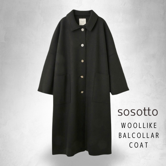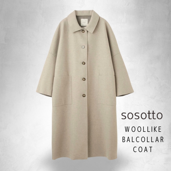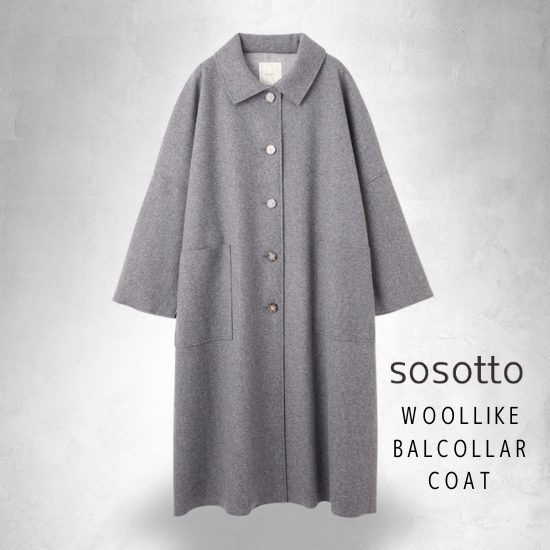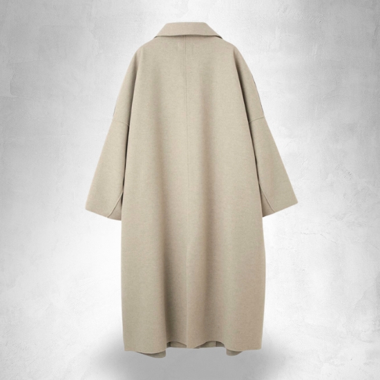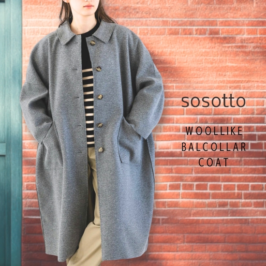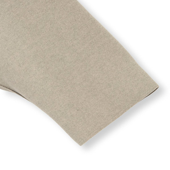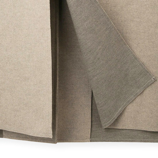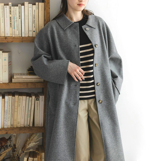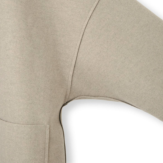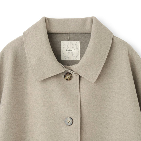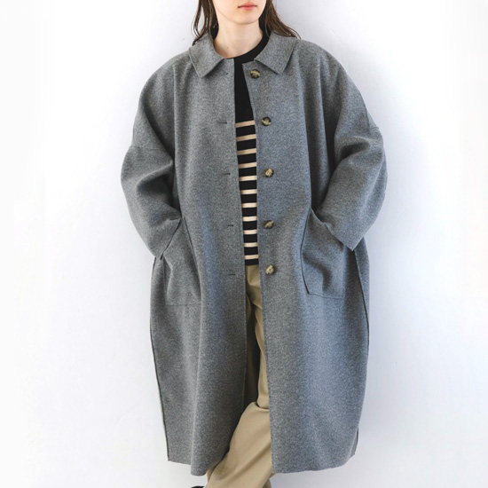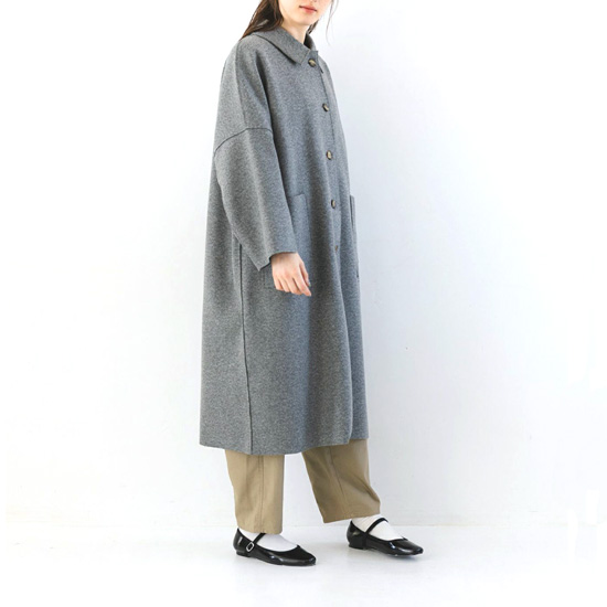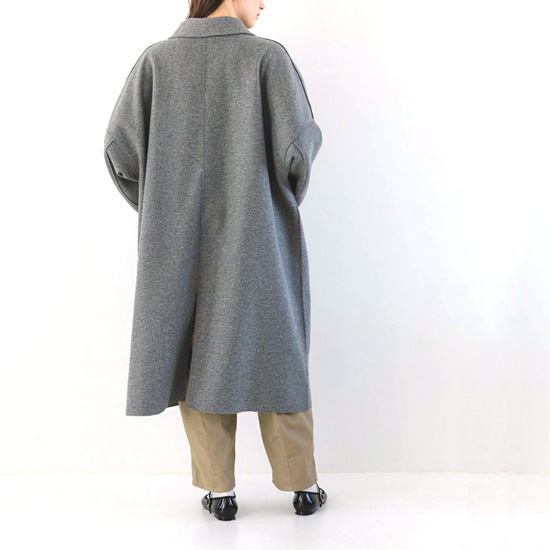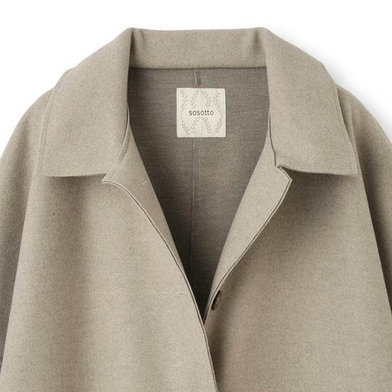 両面で織りの違うダブルフェイスで、ウールライクなポリエステル生地で仕立てています。