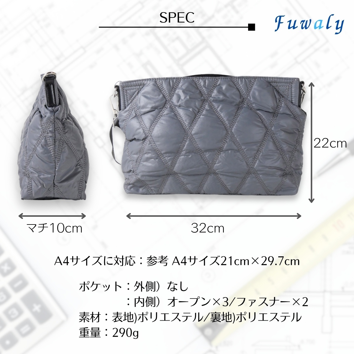 上品な艶感のあるナイロン素材にダイヤ型のキルティング刺しゅうを施しています。