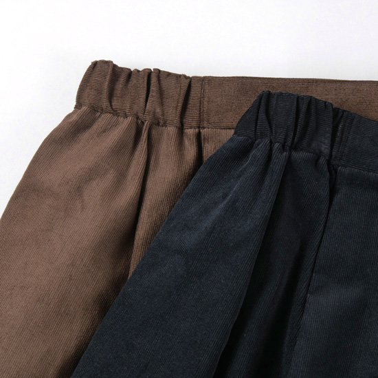 細畝のコーデュロイ素材のコクーンスカート。