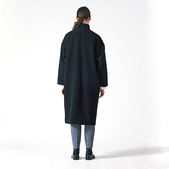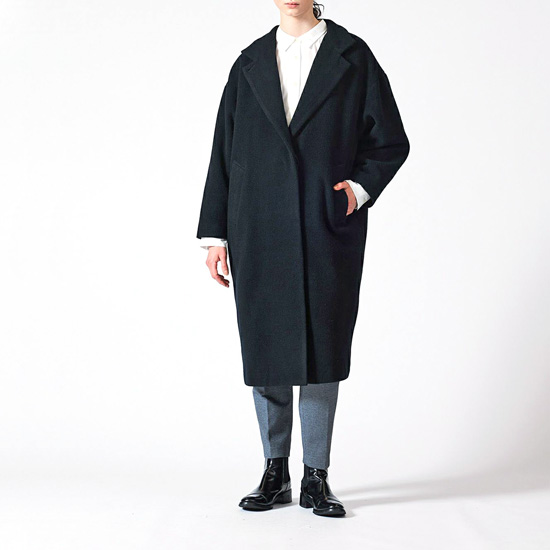 冬のトレンド”ウールモッサ”生地のロングコート。