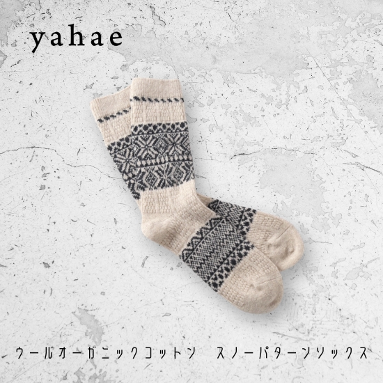 yahae / ヤハエ ウールオーガニックコットン スノーパターンソックス
