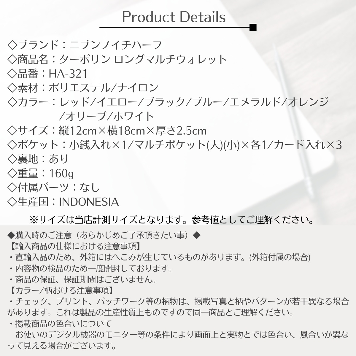 1/2 HALF / ニブンノイチハーフ ターポリン ロングマルチウォレット