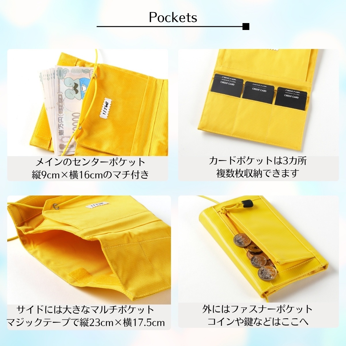 サイズに合わせてスマホや通帳、パスポート、メガネまで収納できる優れモノ。