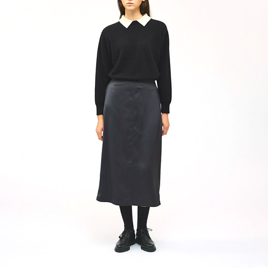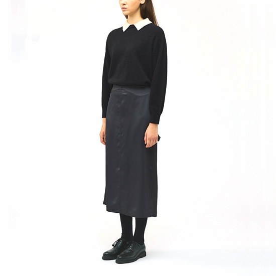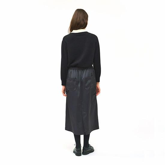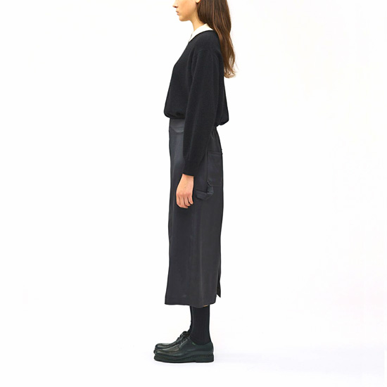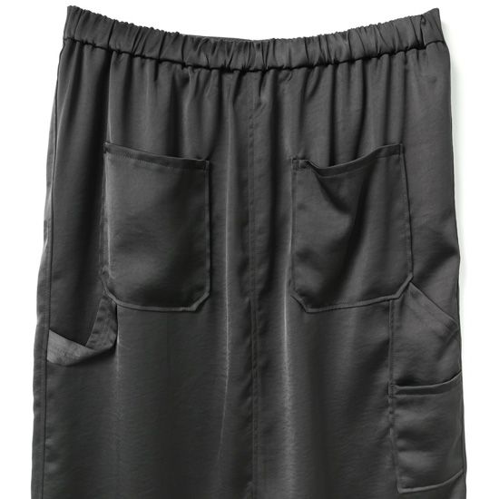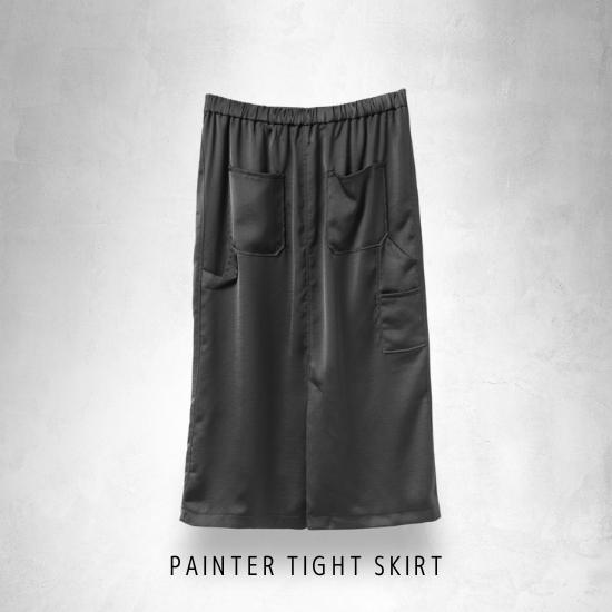 エレガントなヴィンテージサテンにワークテイストを加えたペインタータイトスカート