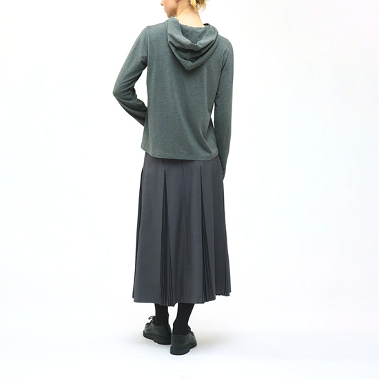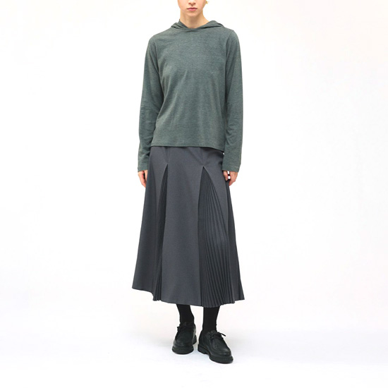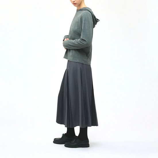前後左右の部分に特殊なプリーツを施したフレアスカート。