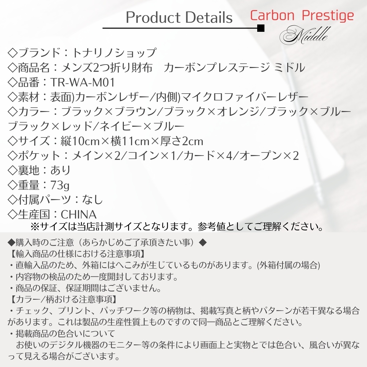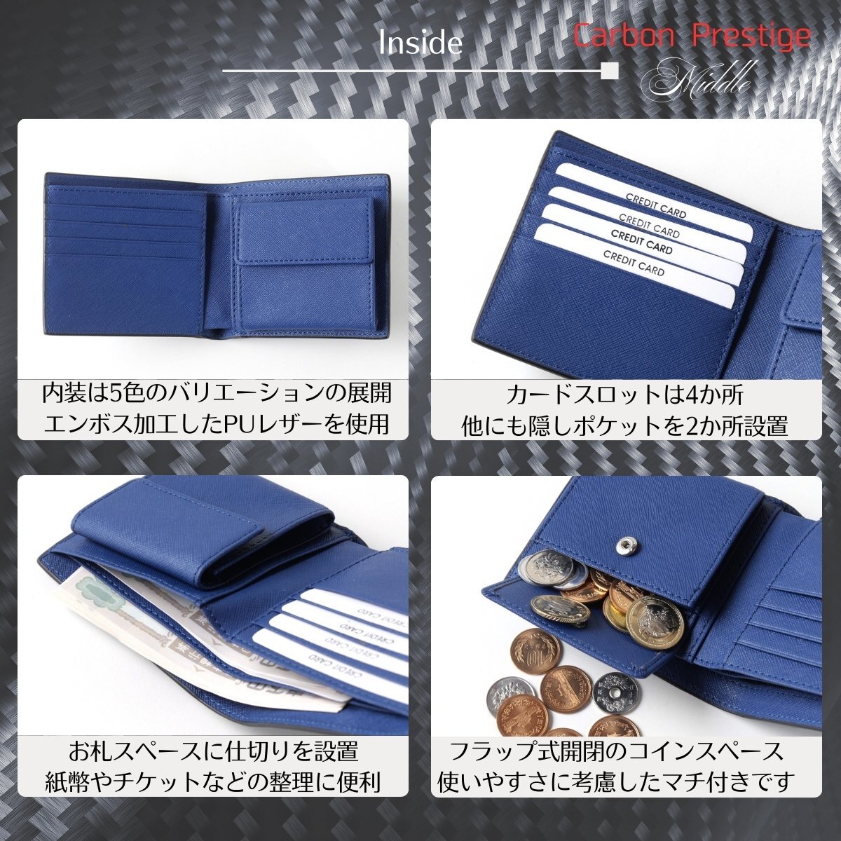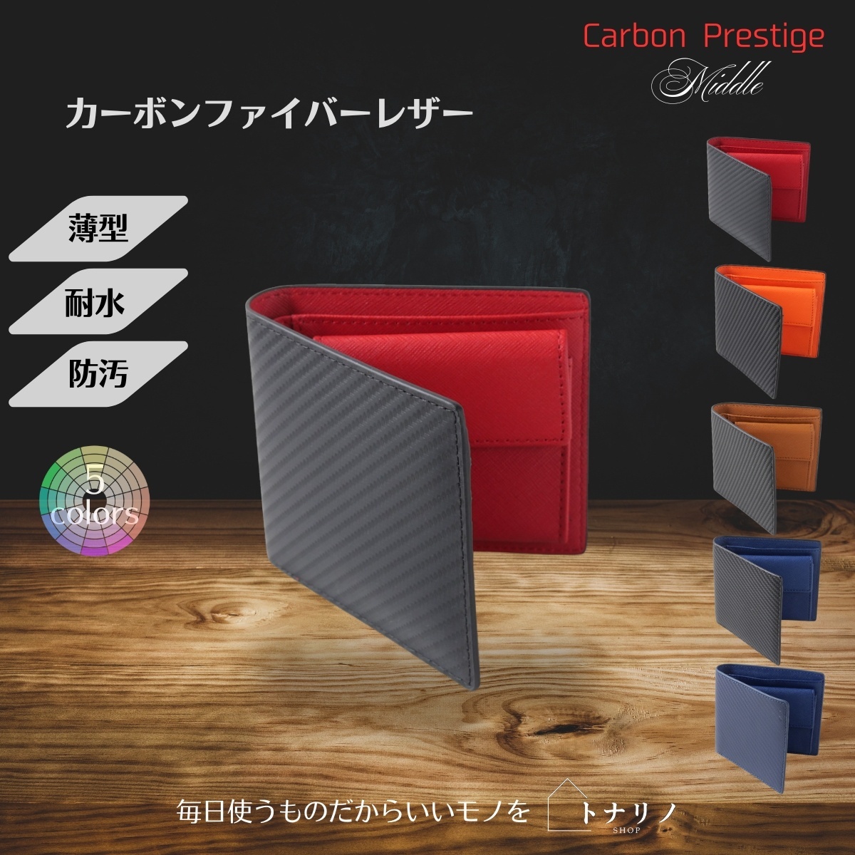 ◇商品名:メンズ2つ折り財布 カーボンプレステージ ミドル