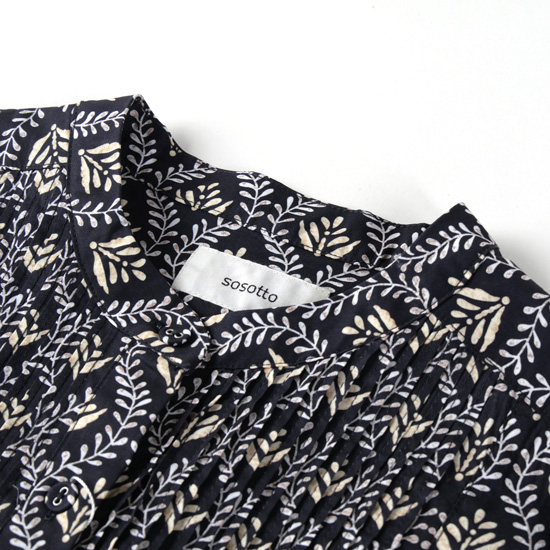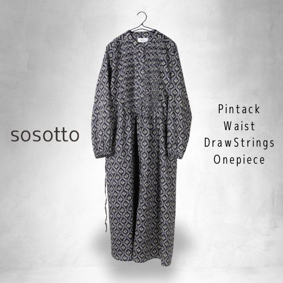 sosotto / ソソット ツタ柄細ピンタック ウエストドロストワンピース