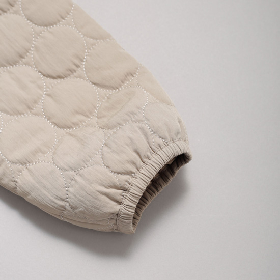 ダウンジャケットよりもしっかり目のポリエステル生地に中綿を入れて保温性もUP。