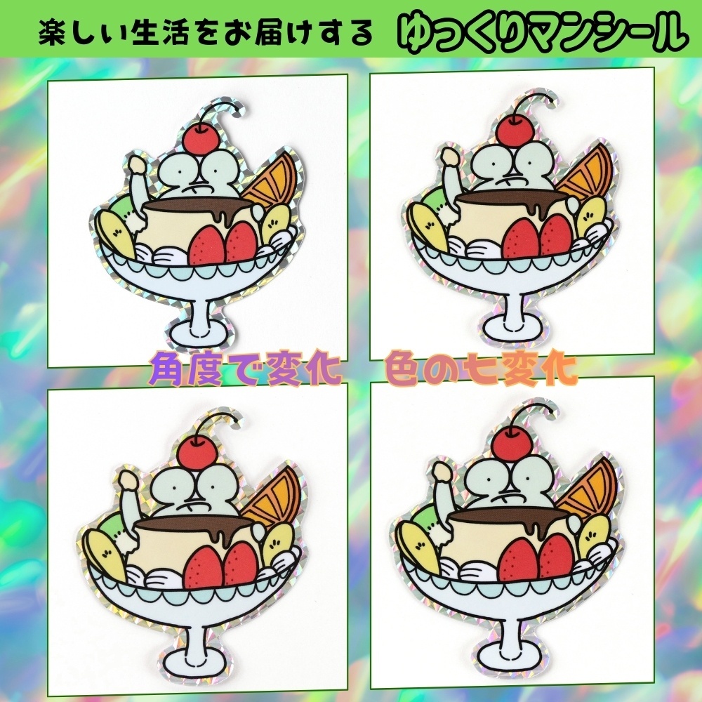 ちょっと贅沢なプリンアラモード大好きのホログラムシールです。
