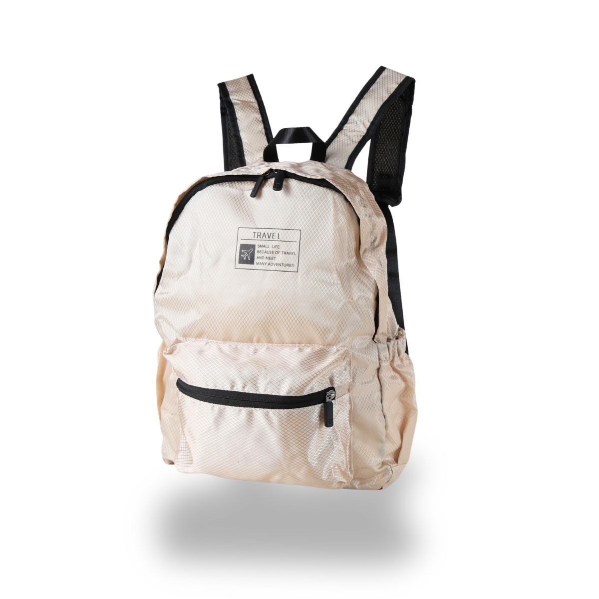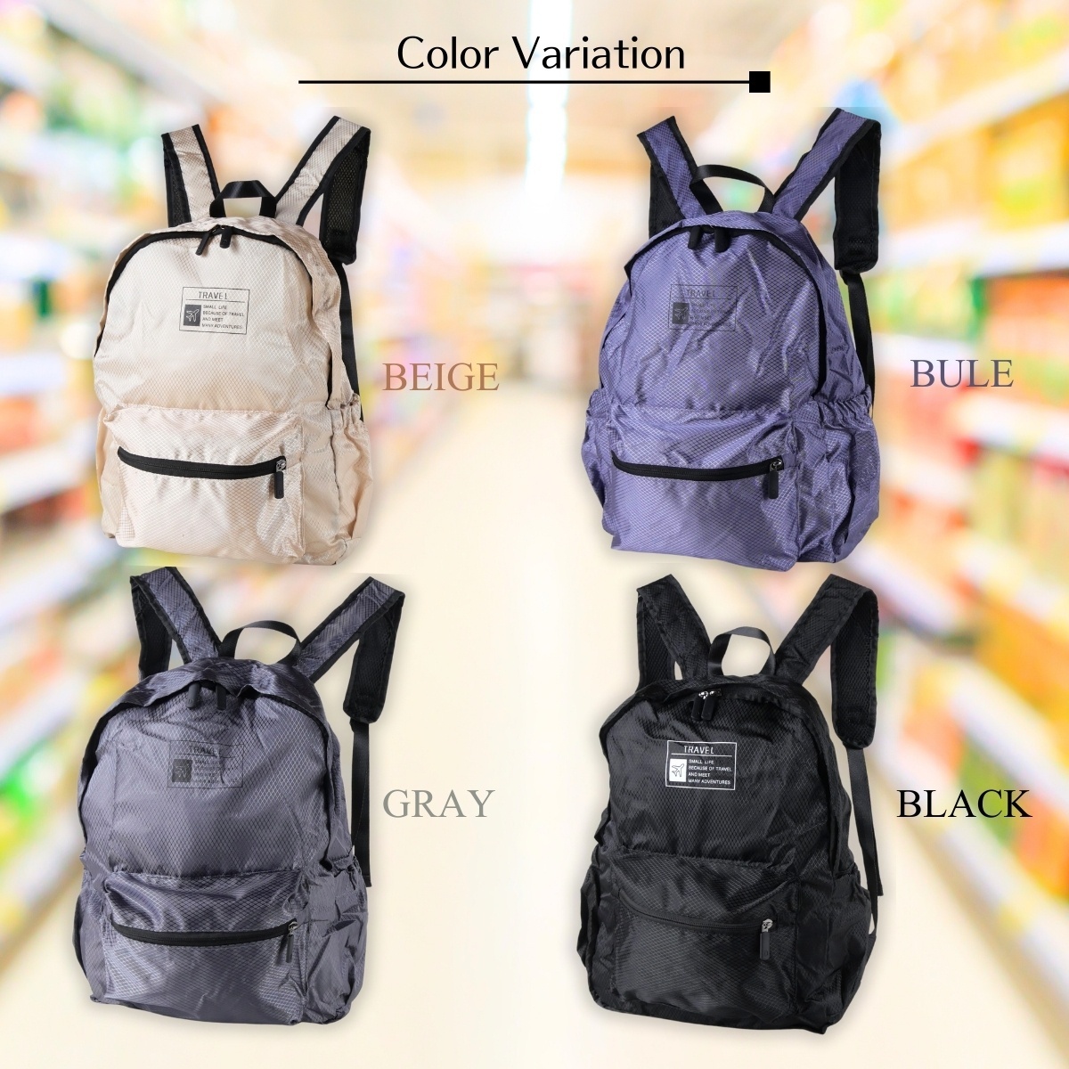 わずか20cm×18cmほどののサイズに折りたたむことができ、小さな鞄にも簡単に収まります。肩に背負えるので、スーパーでちょっと重いものを買ってしまった時や旅先でお土産が増えた際のサブバッグとしても重宝します。日常使いはもちろん、日帰り旅行、ハイキング、キャンプ、学校など多用途に対応する便利なバックパックです。