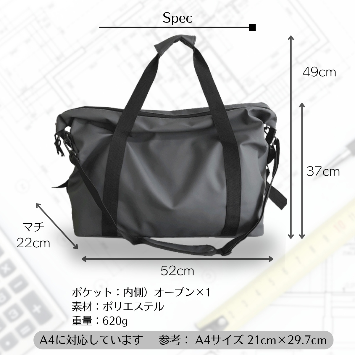 ◇サイズ:縦37cm×横52cm×マチ22cm