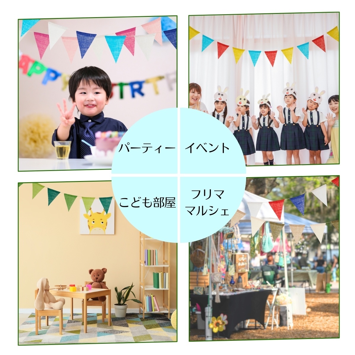 ✔カラフルなデザイン:鮮やかなマルチカラーの三角旗で、イベントの雰囲気を華やかに演出します