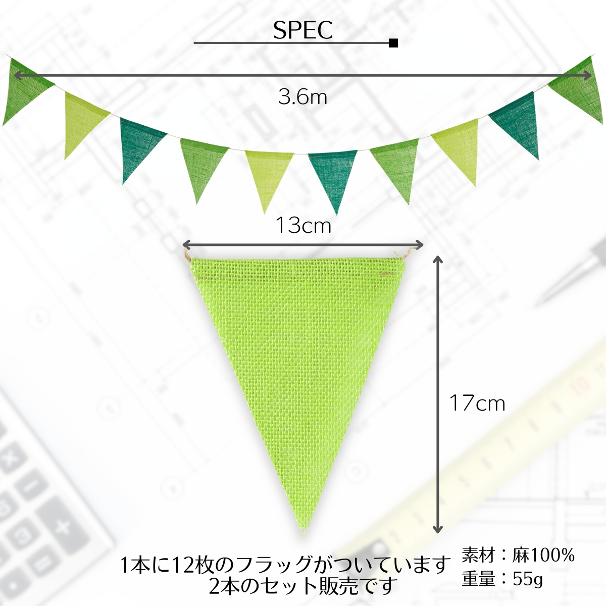 三角旗は麻布製でナチュラル感があり、おしゃれな色合いで最高の装飾効果をもたらします。