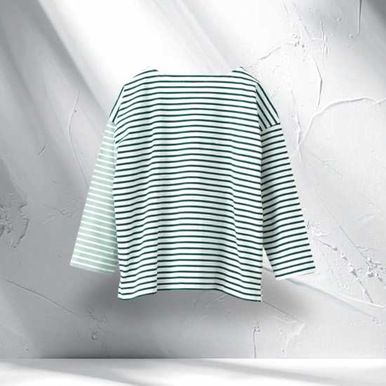 2種類のカラーと幅を変えたボーダーを組み合わせたパネルボーダーTシャツです。