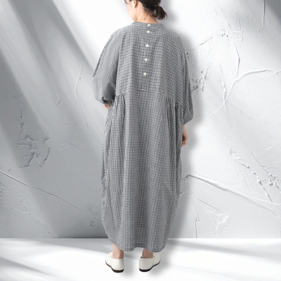 ワイドシルエットのドルマンスリーブワンピース。