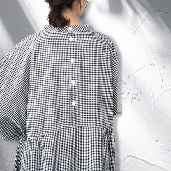 ウエスト上部にギャザーで切り替え、より立体感を表現しています。