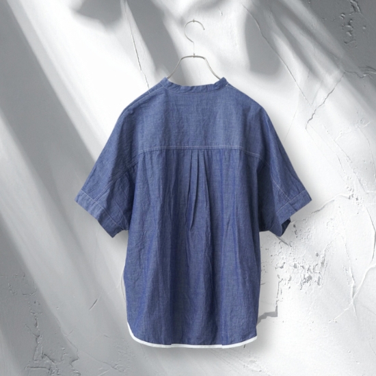 涼し気なシャンブレー素材のプルオーバーシャツ。