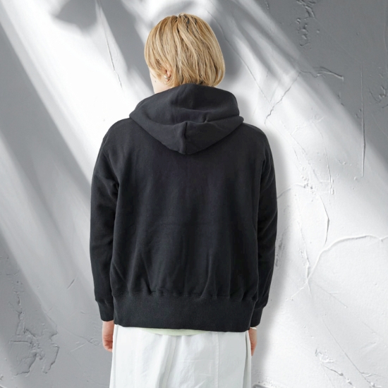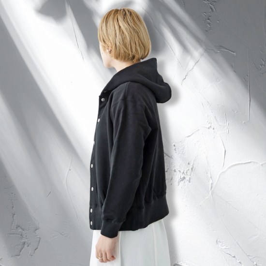 程よい肉厚で柔らかなコーマ裏毛で仕立てたフードカーディガン。