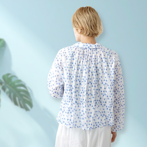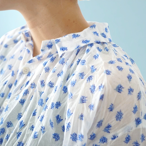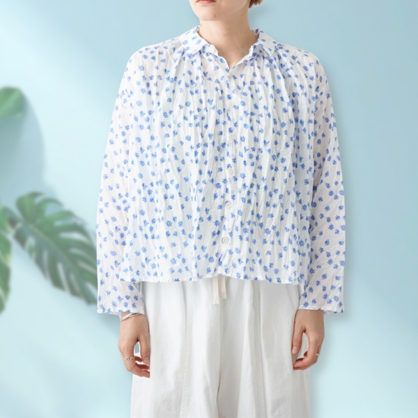 - > grin / グリン floraシアープリント リンクルシャツ