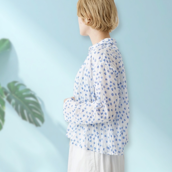 ◇商品名:floraシアープリント リンクルシャツ