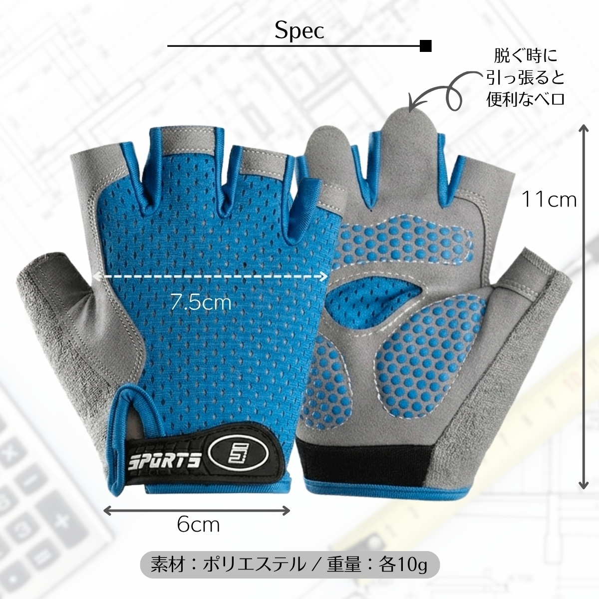 指先が出るハーフフィンガー(半指)タイプ。