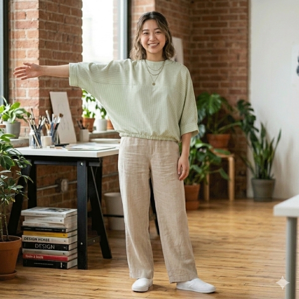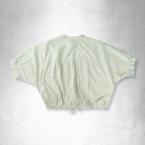 ドルマンスリーブのゆとりのあるサイズ感で、裾のドローコードでブラウジングなど変化を楽しめます。